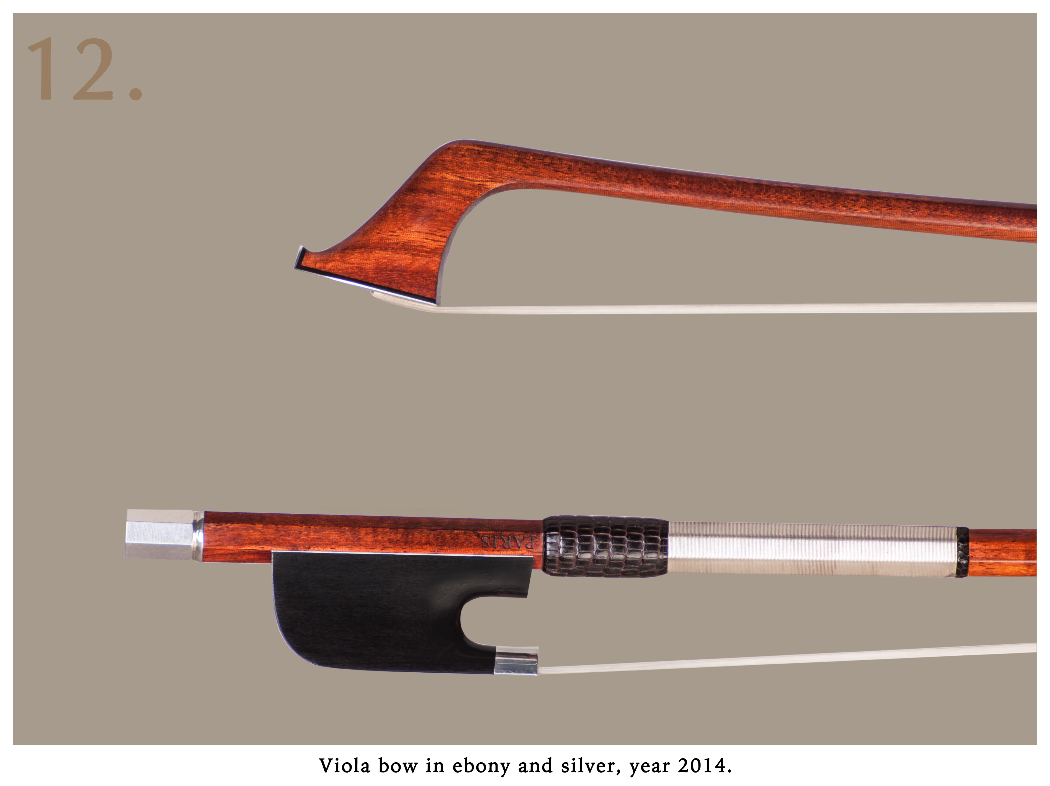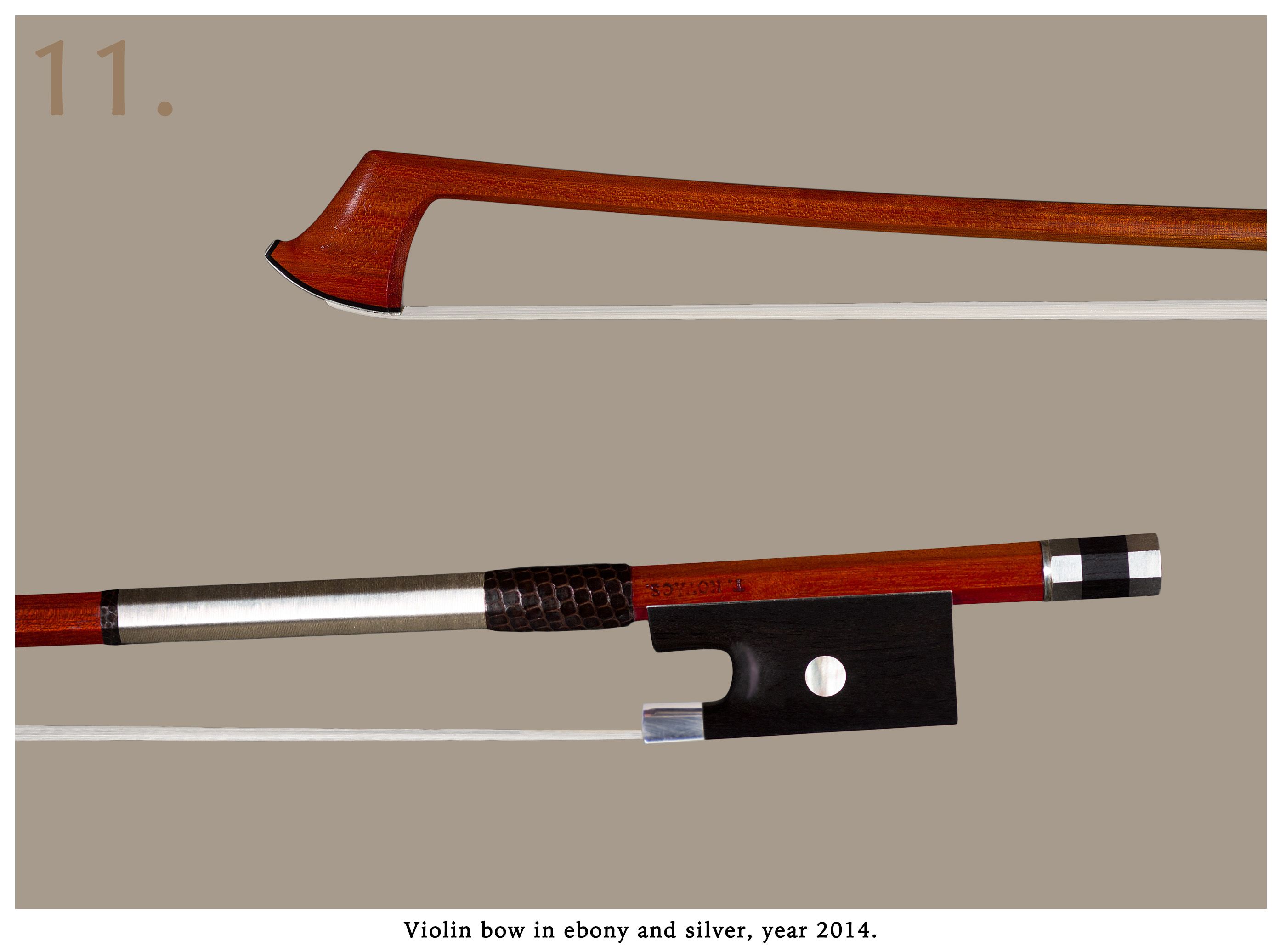 prototype of the cello bow with lens and mircofoto made in 2010 for the first volume of the book "the great contemporary bowmakers from 21st century" edited by andy lim and published by darling publications, colony 2011.